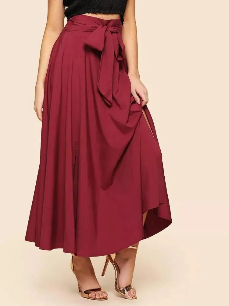 Damen-Langrock mit Taillenband und Bindedetail