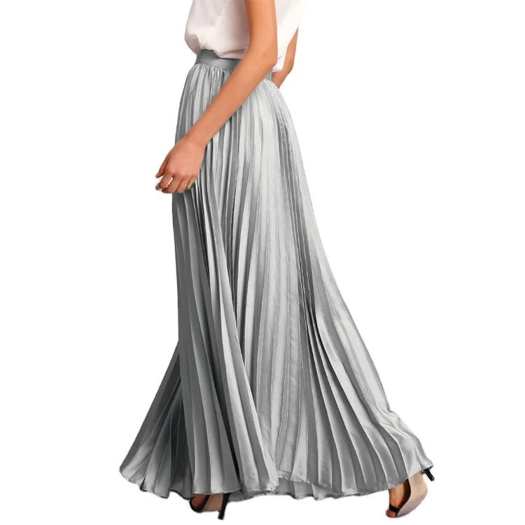 Dieser Damenrock ist aus einem leichten und geschmeidigen Stoff gefertigt und überzeugt durch eine elegante Plisséstruktur mit fließendem Fall. Die lange Länge sorgt für eine lockere, schwungvolle Silhouette, die den Körper umspielt. Der elastische Bund bietet eine flexible Passform und unterstreicht den angenehmen Tragekomfort. Die einfarbige Ausführung mit dezentem Glanz macht den Rock vielseitig kombinierbar und geeignet für unterschiedliche Stilrichtungen. Ideal für mildere Jahreszeiten sowie für alltägliche und etwas elegantere Anlässe.